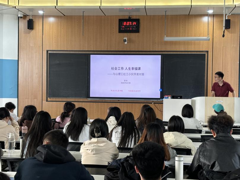 4月29日,淄博市向未来社会工作机构董浩主任走进《社区工作》课堂,为2022级社会工作专业员工带来了一场生动而深刻的社区工作事务的分享会,从一线社工的角度向同学们讲解基层社区工作的实务经验,社工22级全体同学参加。