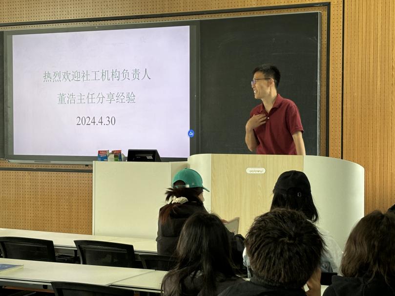 此外,董浩主任还向同学们展示了在真实的社会工作实务中面临的挑战和收获。他告诉大家,社工机构的发展并非一帆风顺,面临着项目少、项目小、宣传工作开展困难、缺乏专业知识反思等问题。但正是这些挑战,让他更加坚定了自己的信念和决心。他通过自己的努力和实践,不断积累经验和知识,逐渐成长为一名优秀的社会工作者。