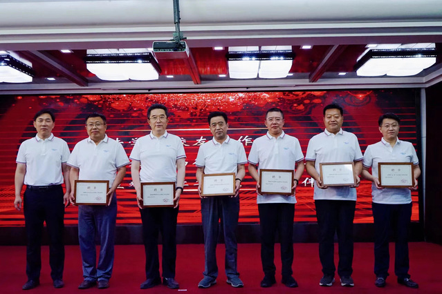 赵金鹏和w88win体育官网入口副经理白洋为副会长颁发聘书。