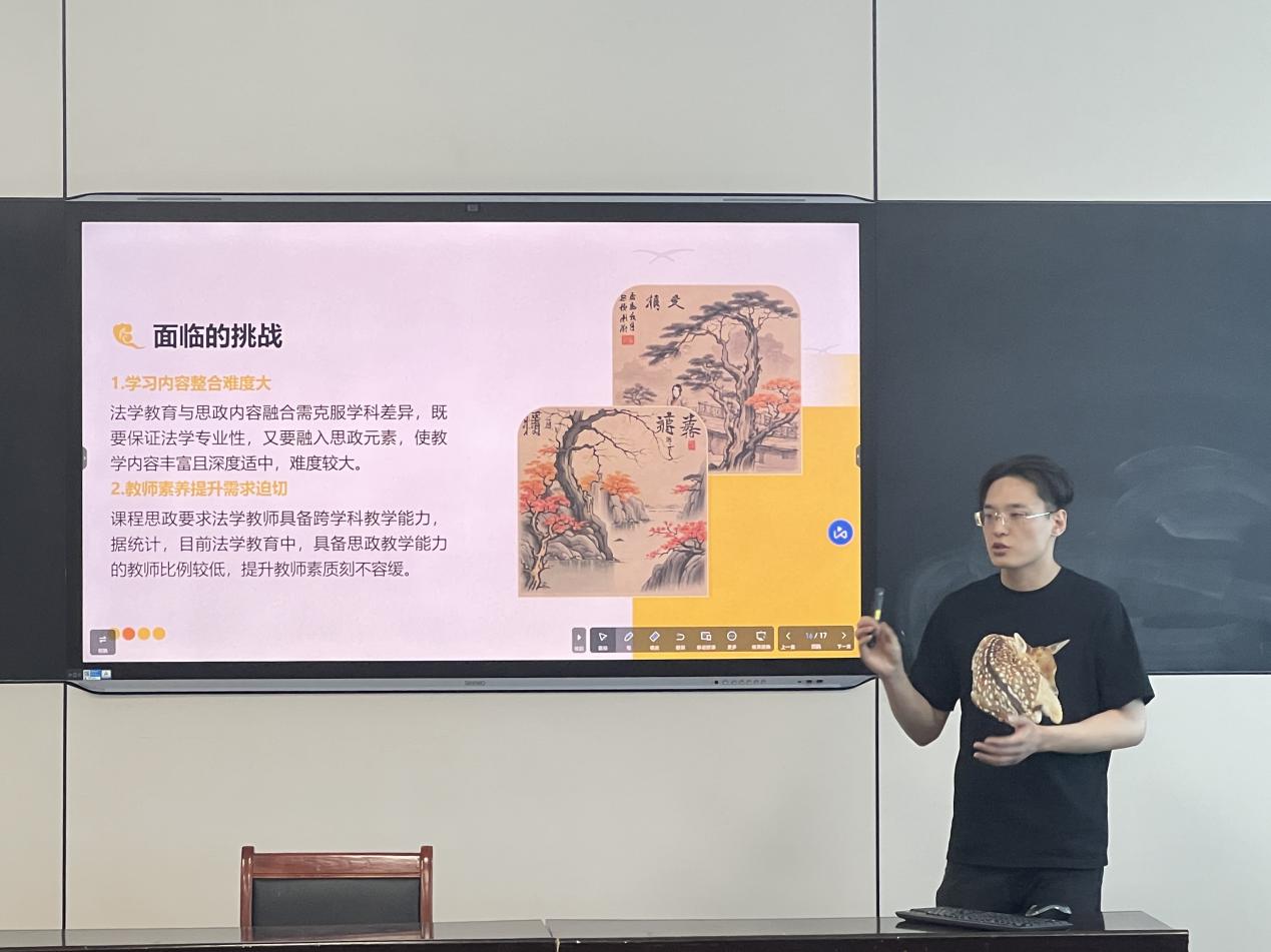 研讨会上,张笑晨从课程思政与法学教育的融合发展路径出发,对如何将思政元素更好的融入法学教学,提升员工们的法律素养这一问题,与在场教师进行了深入的交流和探讨,结合“一带一路”的课程案例,详细阐述了如何将思政元素融入课程内容、教学方法和考核评价等方面。