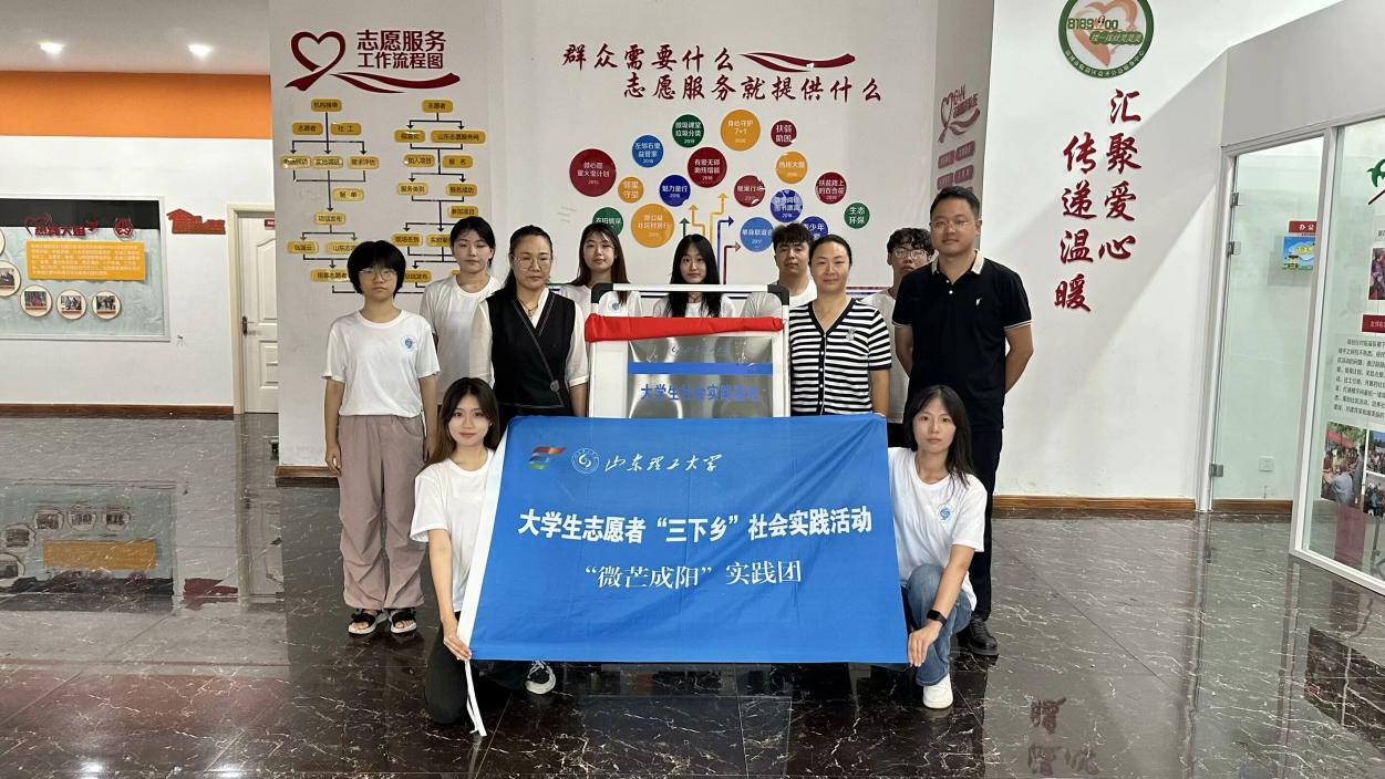 7月16日上午,w88win体育官网入口与临淄区益亓公益服务中心举行了社会实践基地签约暨揭牌仪式。w88win体育官网入口团委书记、员工工作办公室主任李兰晶、辅导员胡涛、益亓公益服务中心负责人亓艳红以及w88win体育官网入口“微芒成阳”社会实践团成员参加签约仪式及相关活动。