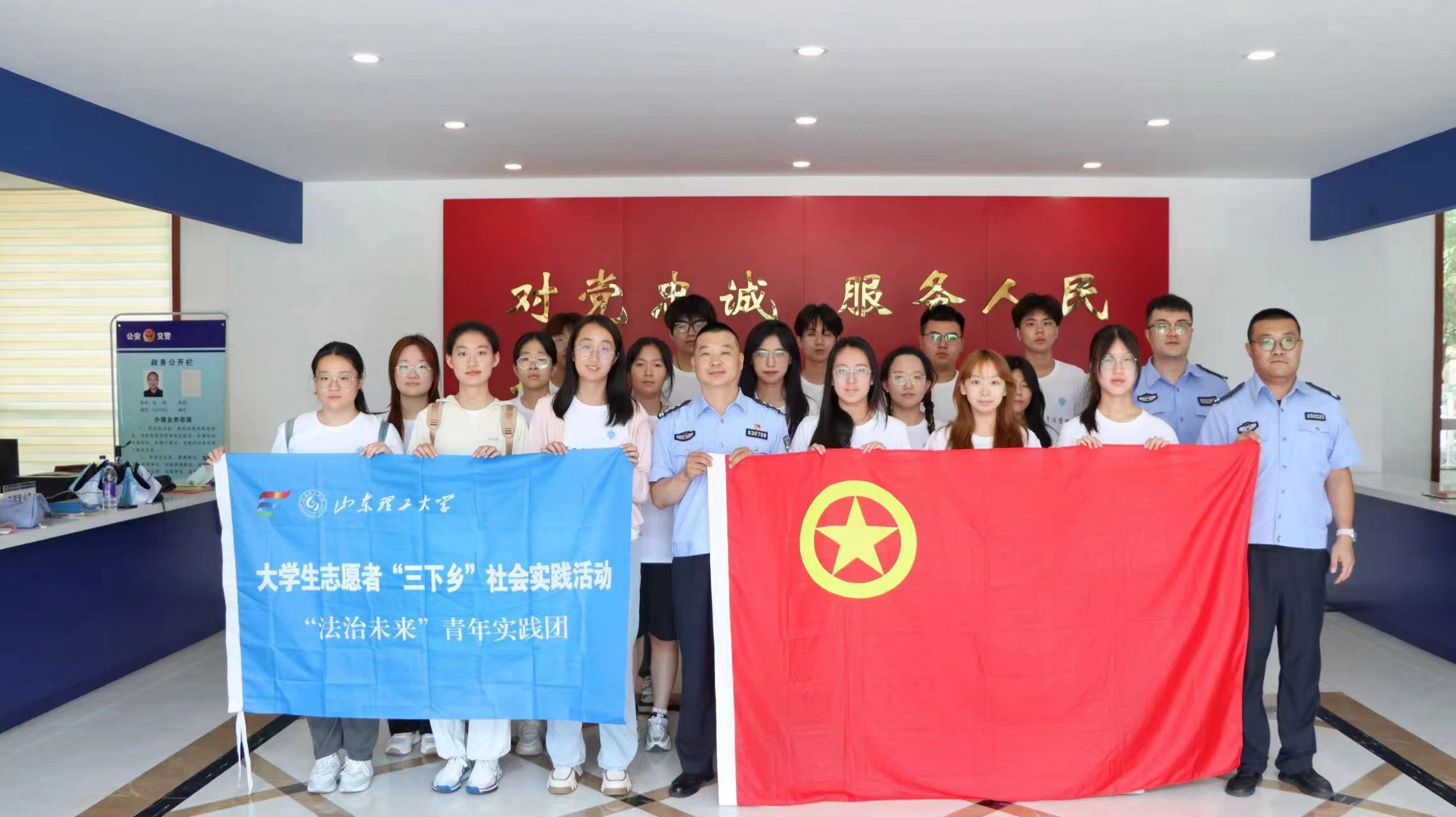 实践团一行来到了周村分局北郊镇派出所。在科技的引领下,北郊镇派出所正积极探索基层治理新模式,让法治之花在基层绽放。