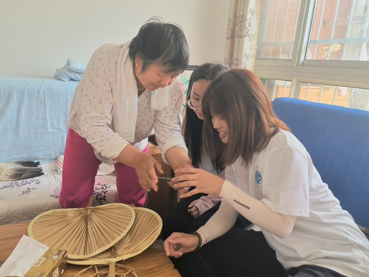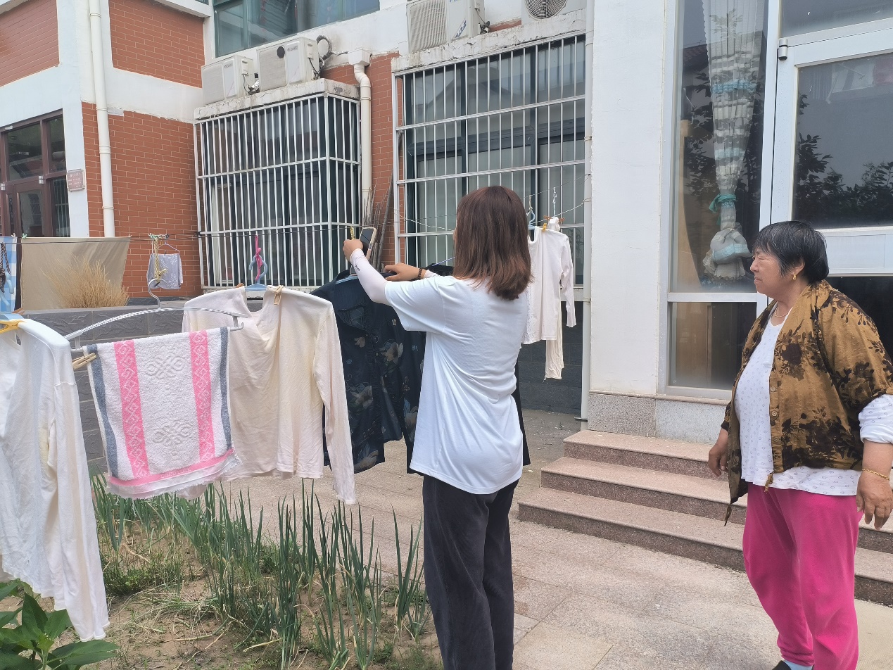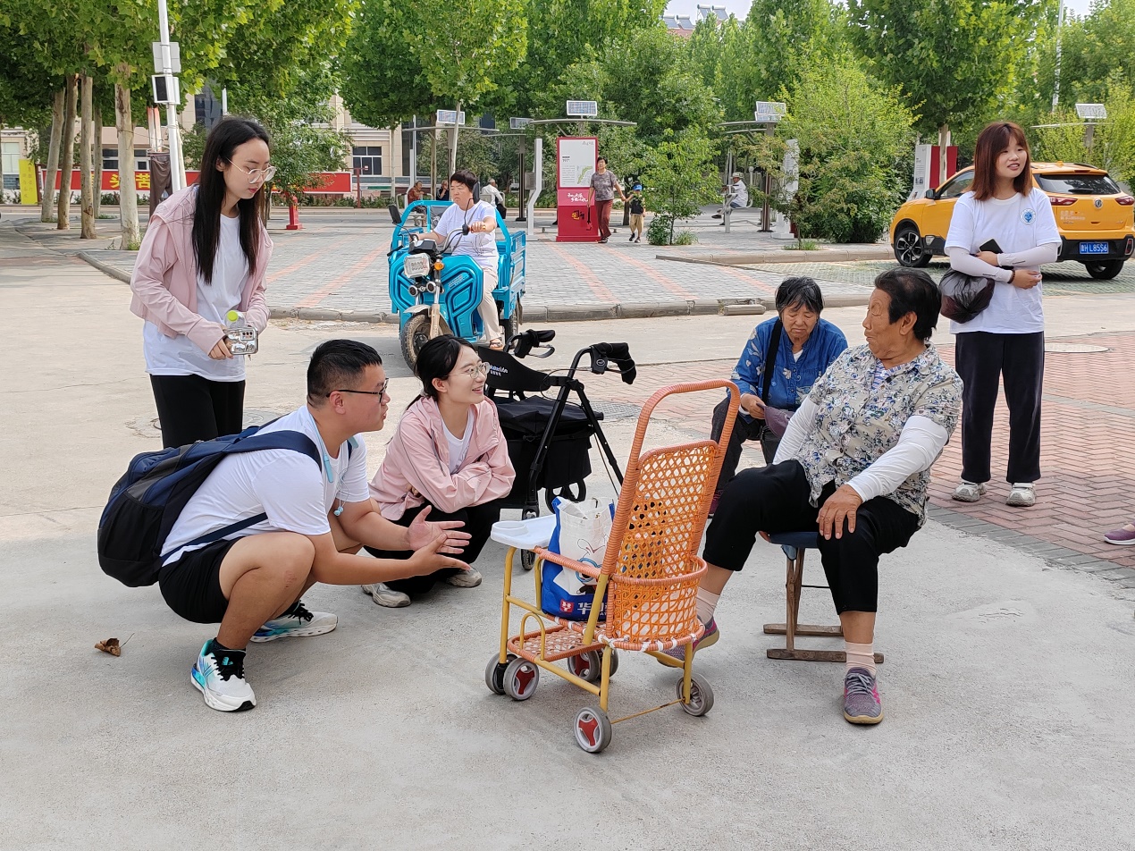 图为齐稷社工实践团成员为社区老人服务