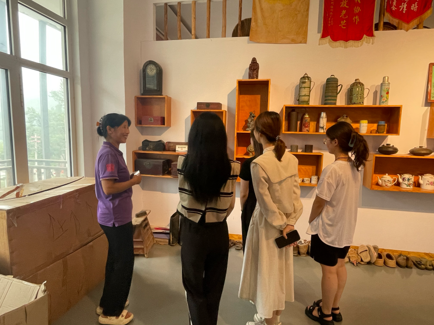乡村振兴的道路上,文化力量不可或缺。当日下午,实践团成员参观乡村记忆博物馆。博物馆内,展品琳琅满目,每一件都散发着独特的文化韵味。上万件珍贵藏品,从古朴的木锯到见证时代变迁的煤油灯,从华丽繁复的花轿到小巧精致的鼻烟壶,它们不仅仅是物品,更是中郝峪村乃至整个乡村历史变迁的见证者。在讲解员的引领下,实践队成员们仔细聆听,详细记录,被中国乡村深厚的文化底蕴所吸引。成员们深知,只有厚植文化力量,让文化如细雨般滋润乡土,才能留住乡村的文化根脉,让乡村焕发出更加蓬勃的生机与活力。
