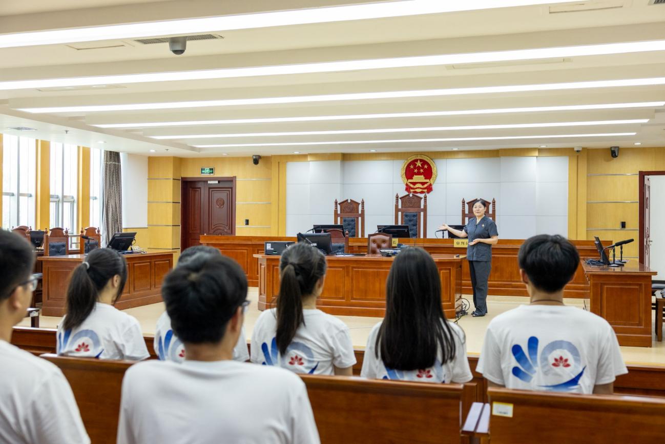 在参观过程中,实践团成员了解到,法院在保持其固有的程序和严谨的同时,也融入了对未成年人的关爱和保护,特别是在少年法庭的设置上。白色的低矮桌椅、圆形的席位布局、暖色调的细节布置,体现出对未成年人的特殊关怀。高庭长为实践团成员分析了当前青少年犯罪的现状、特点及其成因,还简单介绍了法院在预防、惩治和帮教未成年人犯罪方面所采取的措施和取得的成效。实践团成员们表示,在学习中加深了对法律知识的理解,还深刻认识到了法律在维护社会稳定、保护未成年人权益方面的重要作用。
