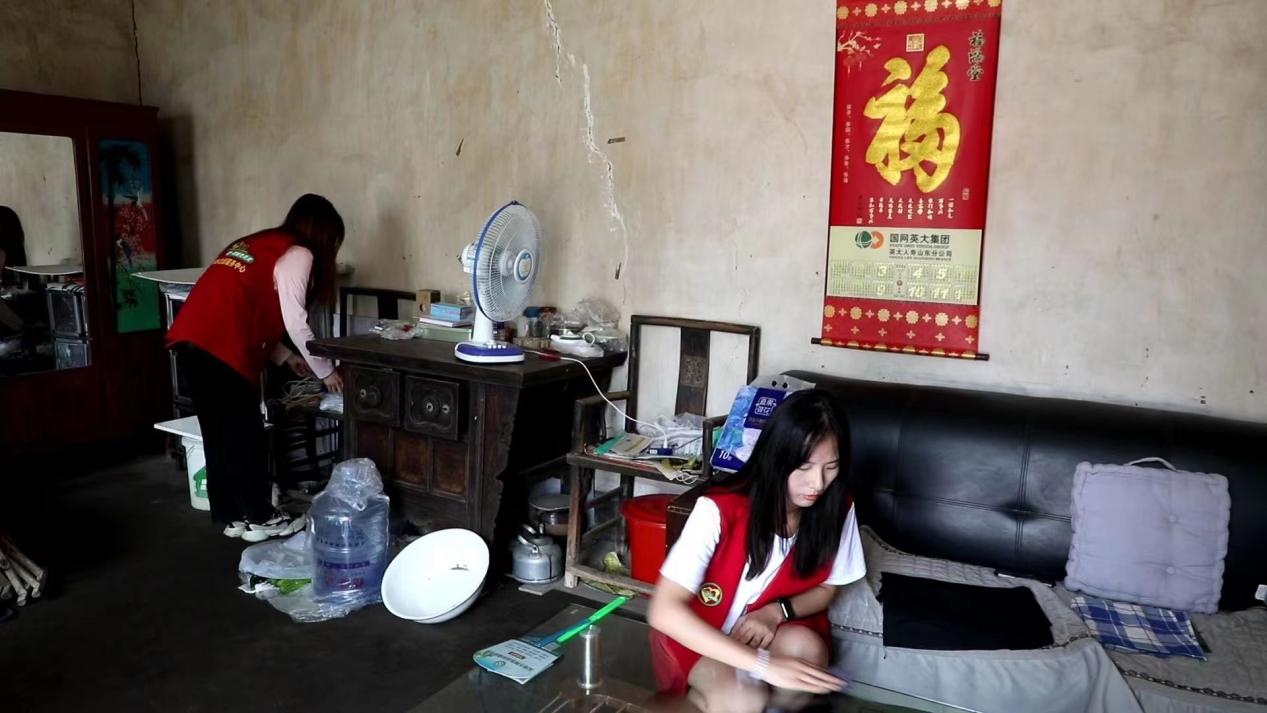 图为实践团成员帮老人打扫卫生