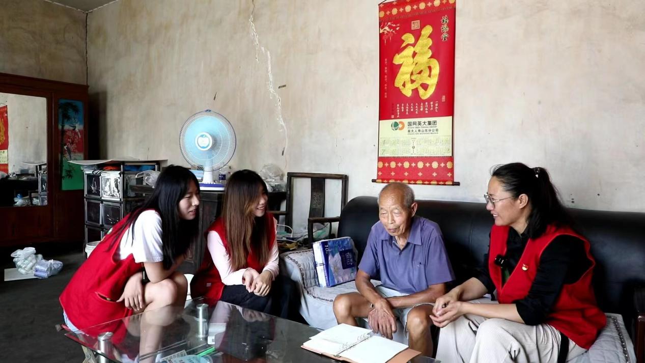 图为实践团成员与老人交流近况