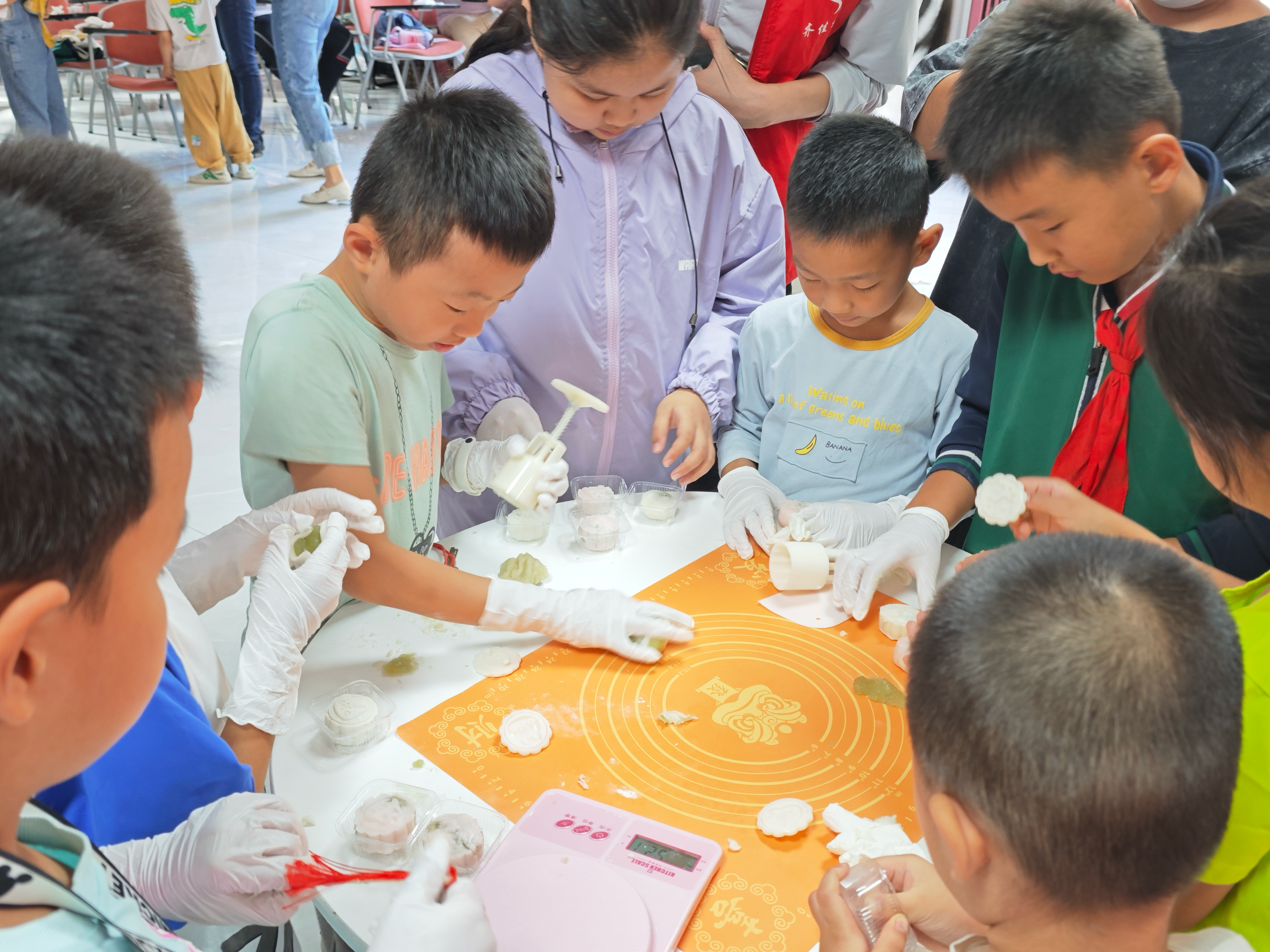 最令人期待的莫过于接下来的包月饼环节。在专业烘焙师的指导下,小朋友们被分成若干小组,大家围坐在一起,戴上手套,拿起模具,开始了他们的创意月饼制作之旅。从和面、包馅到压模,每一步都充满了乐趣与挑战。