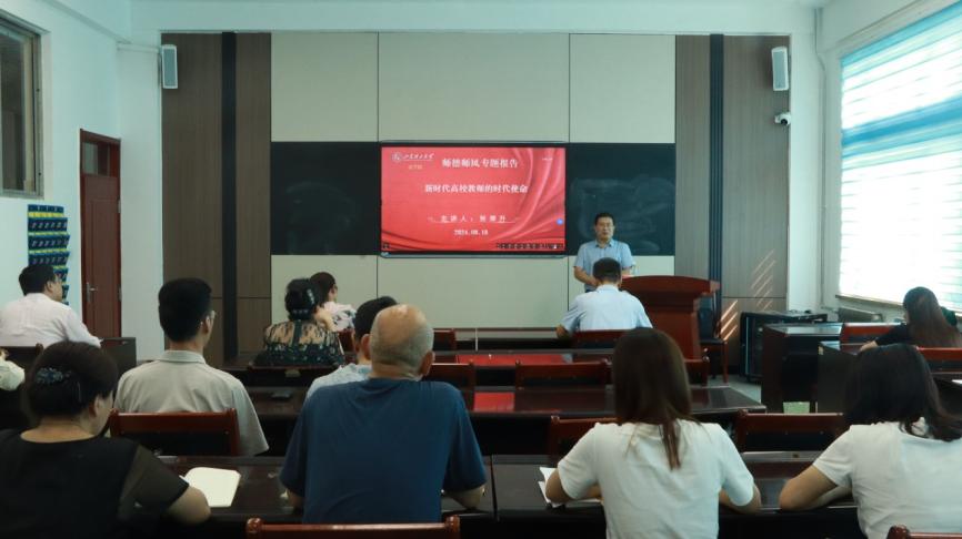 为深入学习贯彻党的二十大精神,推进习近平总书记关于教育的重要论述和关于师德师风建设的重要指示精神特别是教育家精神在公司落地落实、见行见效,9月19日下午,w88win体育官网入口在2号教学楼323教室举办公司师德报告会暨教师教学创新大赛培训交流会,邀请山东省教学名师、公司师德宣讲团成员、电气与电子工程公司张厚升教授作专题报告。w88win体育官网入口全体教师参会,经理王玲主持会议。