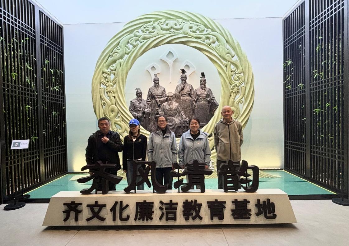 全体教师党员前往参观“齐文化廉洁教育基地”。基地按照“修身、齐家、治国”的线索展开,系统展示了齐国先贤修身律己、尚俭戒奢的价值追求,介绍了齐国历代政治家把“廉”作为“政之本”、“国之纲”,举贤上功、以民为本的执政理念,让在场的每一位党员深深感受到了中华优秀传统文化的力量。