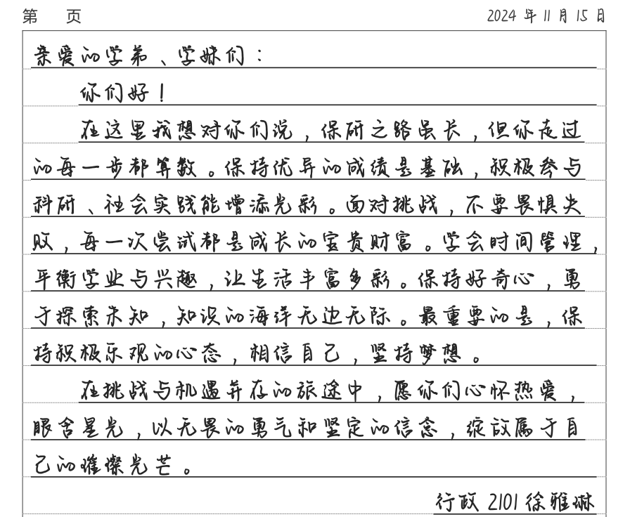 线上部分则邀请了行政管理专业2021级的推免员工徐雅琳和陈龙悦进行经验分享。她们通过线上平台,向22级的员工分享了推免经历、大学期间的学术研究路径以及未来职业规划等方面的宝贵经验。