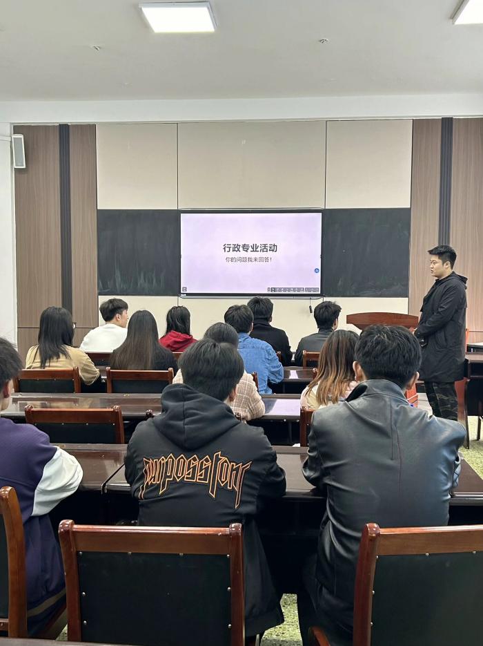 11月15日,行政管理专业于2教323教室成功举办了一场别开生面的交流活动——“你想问什么?我们来回答!”,行政管理专业2022级和2023级的员工代表积极参与。活动分为线上和线下两部分进行,由行政2201班班长王嘉诚主持。