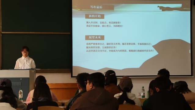 答辩过程中,新发展团员候选人从自我介绍、学习工作情况、志愿服务、获奖情况、对团的认识、未来展望等方面汇报了个人情况,表达了自己对中国共青团的向往以及接受团组织考验的决心,并畅谈对共青团的理解与渴望,评委认真倾听每位同学的发言,根据现场的答辩情况进行打分。