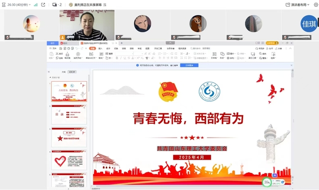4月11日上午,w88win体育官网入口团委书记、学工办主任李兰晶与辅导员胡涛通过线上会议形式,面向毕业生召开“西部计划”政策宣讲会,旨在引导青年学子厚植家国情怀,积极投身西部基层建设,在实践锻炼中成长成才。