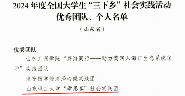 近日,共青团中央向共青团山东省委公司部、青年发展部致发的表扬信中,揭晓了2024年度全国老员工“三下乡”社会实践活动优秀团队、个人名单。公司“学思享”社会实践团凭借扎实的实践成果、突出的社会贡献,从全国众多参选团队中脱颖而出,荣获优秀团队!