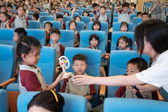 (图为徐欣杰在课堂上为同学们讲解“电的魔法世界”)