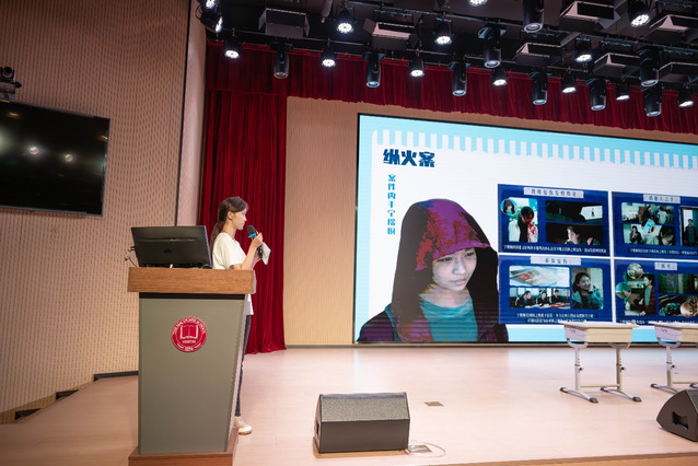 (图为朱雪菲在课堂上为员工们讲解“少女纵火案”)