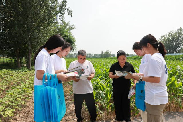 最后,实践团成员们深入田间地头,主动与劳作的村民攀谈,利用村民劳作间隙开展“移动普法”。他们结合蒜乡农时特点,重点讲解土地纠纷、农资购销、务工权益等实际问题,并鼓励他们在日常交流中多尝试使用普通话,强调其在信息获取、外出务工、子女教育等方面的重要性。