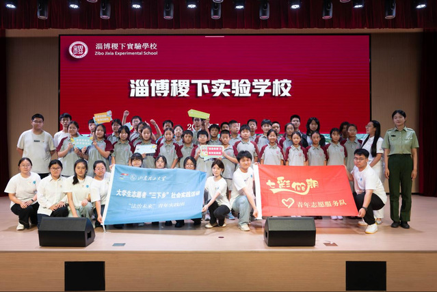 (图为“法治未来”青年实践团在淄博稷下实验公司的合影)