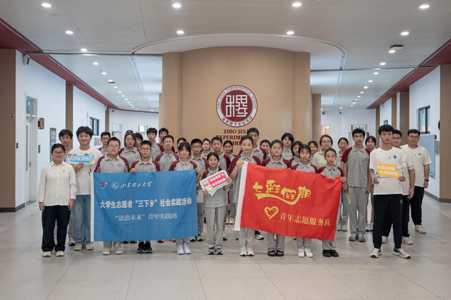 (图为实践团成员与淄博稷下实验公司的的师生合影)