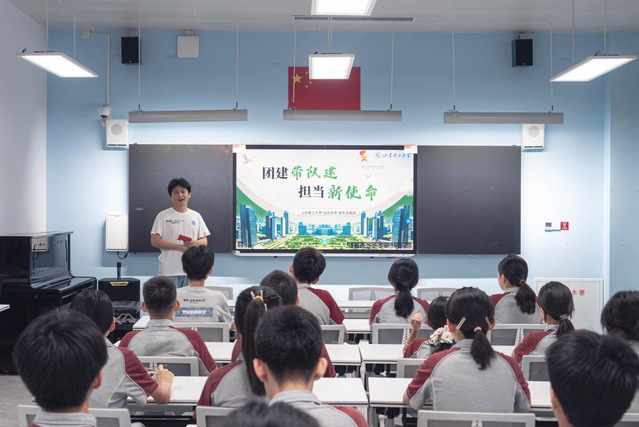 (图为杨铭昊为淄博市稷下实验公司宣讲)