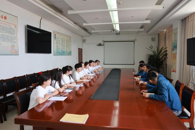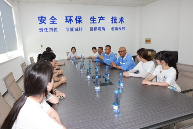 (图为实践团成员与企业工作人员进行座谈会)