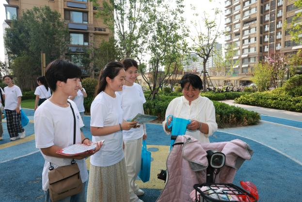 最后,实践团将调研阵地转移至平安佳苑社区广场,开展普法宣传活动。成员们向居民发放精心制作的普法资料,内容紧密贴合民生需求。针对老年群体,重点解读《民法典》中关于物业权益保障的相关条款,并结合新型电信网络诈骗的常见手法,传授实用的防范技巧;面向中青年居民,则普及劳动合同签订中的常见风险点及依法维权的有效途径。
