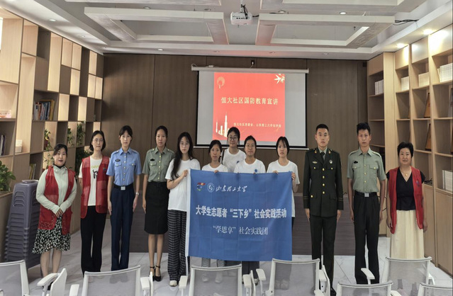 为加强全民国防教育,激发适龄青年参军报国热情,7月17日,w88win体育官网入口“学思享”社会实践团走进淄博市恒大社区,进行国防教育宣讲。退役老员工士兵以亲身经历解读政策、分享军旅成长故事,点燃青年从军报国理想。