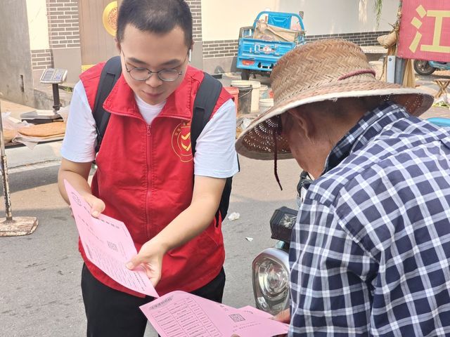 (图为实践团成员为当地村民解答疑惑)