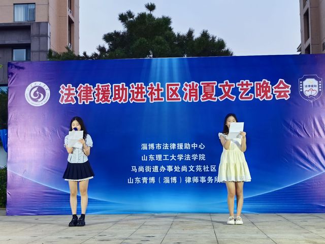 傍晚,稷下法治先锋实践团携手淄博市法律援助中心、山东青博(淄博)律师事务所,在张店尚文苑社区共同举办“法律援助进社区消夏文艺晚会”。晚会以“弘扬法治精神,传递法治温暖”为主题,精心编排了一系列融合红色文化与法治文化的精彩节目。晚会还设置了有奖问答互动环节,主持人围绕《民法典》《法律援助条例》等法律法规以及红色文化知识提出问题,台下群众踊跃举手、积极抢答。