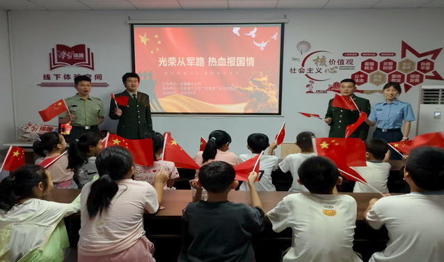 7月18日,w88win体育官网入口“学思享”社会实践团联合天乙村党群服务中心为社区儿童带来了一场主题为“赤帜童心铸军魂”的国防教育宣讲活动。