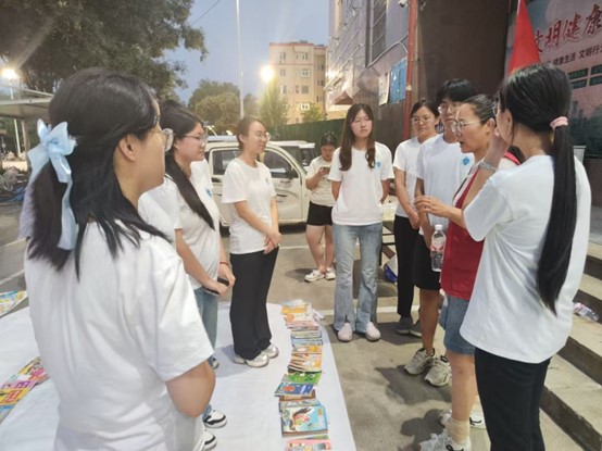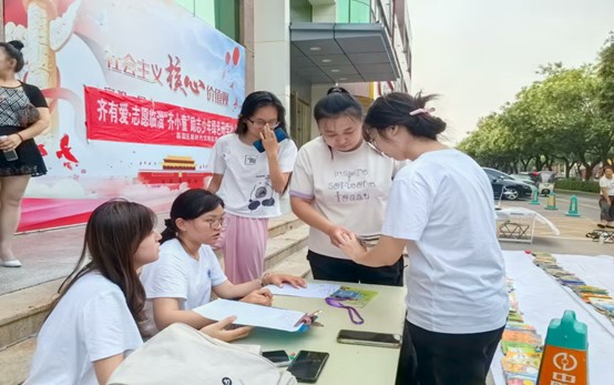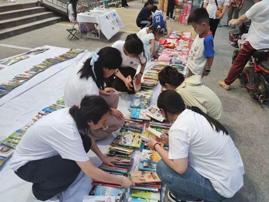 活动筹备阶段,实践团成员协助当地志愿服务站完成图书运输和整理书籍、布置现场等工作。活动现场,实践团成员们化身“阅读导航员”,为不同年龄段读者提供精准推荐书籍的服务,并帮助员工及家长寻找所求书籍,细心登记好每笔图书的购买信息,最终将活动所取得的收益投入到志愿服务中。