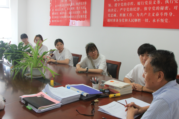 (图为实践团成员与民事审判庭庭长座谈)