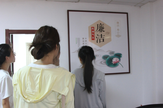 (图为实践团参观学习山东同力兴国律所的廉洁文化展廊)