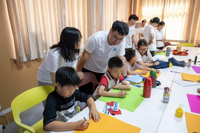 (图为实践团成员陪伴孩子们创作交流)