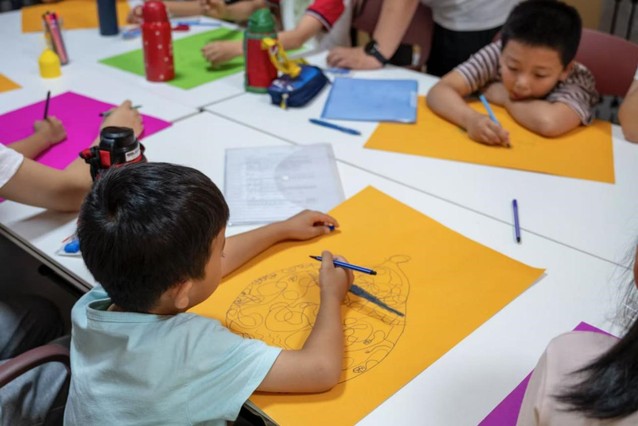 (图为孩子们绘制青花瓷主题作品)