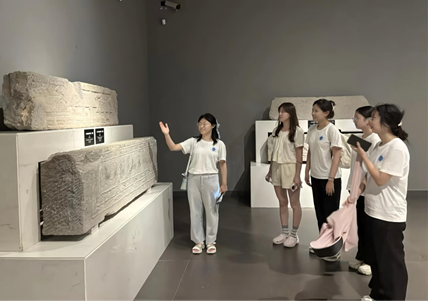 在文物展区,实践团成员直观感受到齐文化的历史脉络与智慧结晶。各种文物静静陈列,其纹路、色彩尽显历史厚重。成员们驻足细观,侧耳倾听讲解员讲述文物背后的故事。