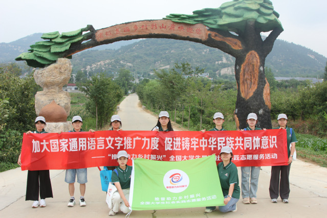 (图为实践团在彩山前村党群服务中心进行推普活动)