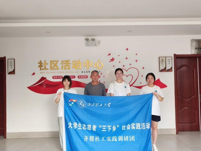 (图为”齐稷社工实践团成员与社区工作人员合影)
