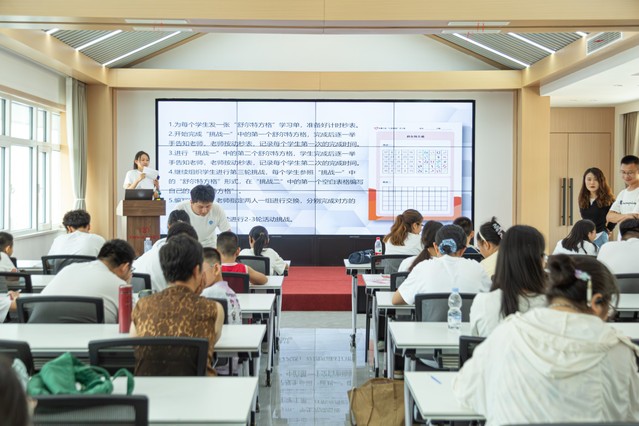 (图为孙语讲解“舒尔特方格”的游戏规则)