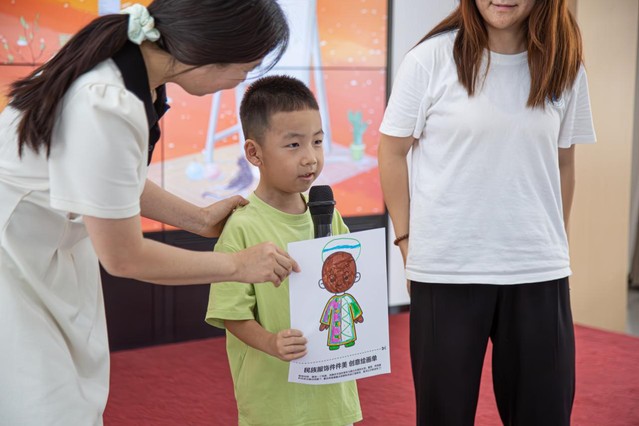 知识讲解结束后,实践团成员向员工分发卡纸与水彩笔,并指导员工将参考课件与想象结合,创作自己心目中的民族服饰。绘画完成后,员工们展示分享各自的作品,还互相交流了创作思路和对民族服饰的理解。