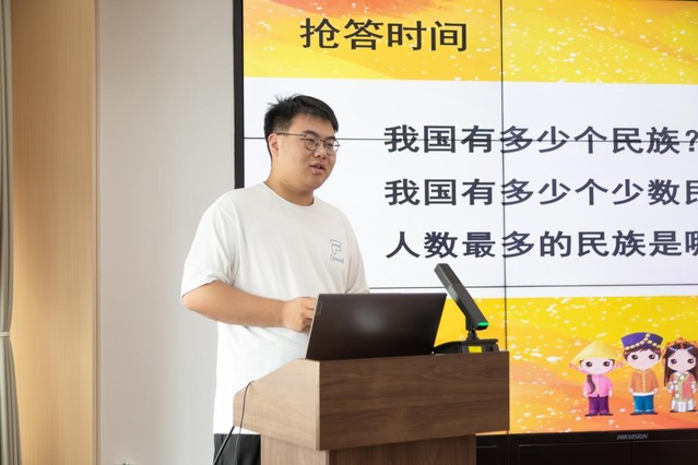 孙骁勇以“民族服饰件件美”为主题,围绕民族文化进行“趣味问答”环节。员工们反应迅速,纷纷举手抢答。