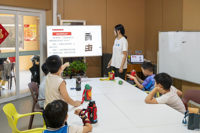 实践团成员张雪琪以“童心筑梦·社会主义核心价值观小课堂”为主题,通过“小记者看中国”“我是爱国小卫士”等互动环节,向员工们阐释社会主义核心价值观的核心内涵。