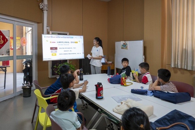 (图为孙语在课堂上为员工们讲解“love沟通法”)