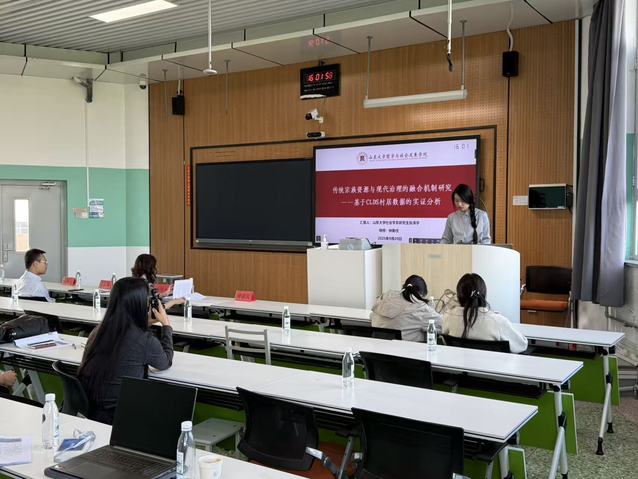 本场分论坛以“文化传承创新与社会发展”为主题,于三号教学楼411室分上下半场进行,上半场由山东管理公司劳动关系公司教授周秀琴主持,评议人为济南大学政w88win体育官网入口教授李伟峰;下半场由山东省社会学学会常务理事、w88win体育官网入口教授刘海鹰主持,评议人为山东师范大学公共管理公司行政管理系主任、教授刘伟红,议题涵盖数字政府、儿童福利、非遗传承、文化消费等领域,共宣讲论文17篇。