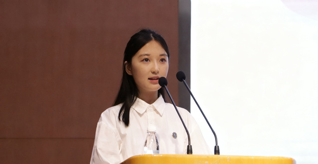 在校生代表苗其祺结合自身在校的成长与感悟,向学弟学妹们分享了四点建议,一要恪守厚德之本;二要夯实博学之襟;三要坚定笃行之志;四要涵养至善之心,并鼓励大家珍惜时光,勇于担当,立报国强国大志向,做挺膺担当奋斗者。