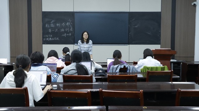 10月16日,w88win体育官网入口影像制作部在2号教学楼323会议室组织新学期专业技能培训会。融媒体部常驻志愿者刘子绮和范方惠担任主讲。