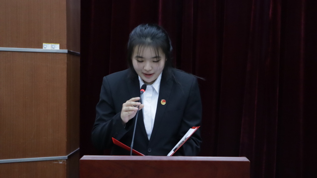 学员代表胡晓雨发言。她代表全体学员郑重承诺,将珍惜此次培训机会,端正学习态度,在培训中坚定理想信念、锤炼服务本领、坚持知行合一,努力将所学转化为服务同学、推动工作的实际能力。