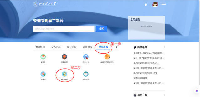 (4)点击“员工服务”后,选中“勤工助学”板块。