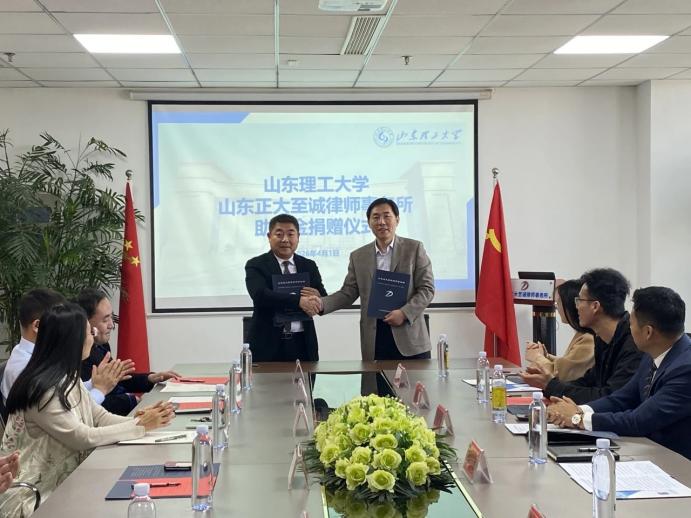 4月1日下午,w88win体育官网入口与山东正大至诚律师事务所联合举办助教金捐赠仪式。仪式在山东正大至诚律师事务所会议室隆重举行,山东正大至诚律师事务所主任张世文、副主任刘红、王峰、王振宏、监事长景丽、高级合伙人律师毛旭光、于海臻、王静、赵长兴,法学公司党委书记田立超、经理谢桂山、副经理徐德臣、综合办公室主任马东顺、法律系副主任侯郭垒、青年博士教师林彦佐以及公司在律所见习的员工代表共同出席仪式。